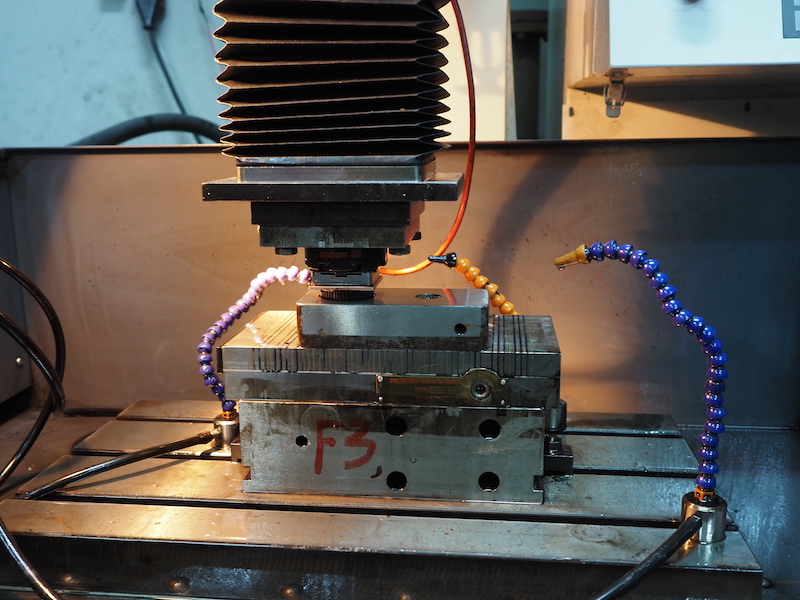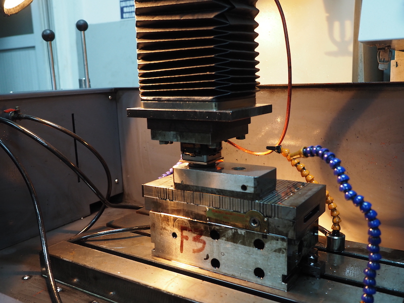 CNC makinelerinden sonra erezyon makinelerine gönderilen yedek parça kalıpları, bu gelişmiş araçlarda en ince ayrıntısına kadar işlenir. Makine yedek parçalarının son halinin verileceği bu kalıplar, hata payı sıfır olarak şekillenir. Kesme kalıpları ile devam eden bu işlem, ekibimiz tarafından sürekli denetlenir. Makine kalıp, plastik kalıplar, metal parça kalıplarının bu araçlarda oluşturulmasının ardından enjeksiyon makinelerine gönderilir. Enjeksiyon makineleri, son hali verilen kalıplara ham maddenin doldurulmasını sağlar.